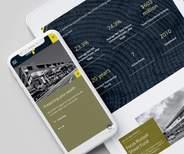 Using a mix of colour and black and white photography with blocky shapes, SLICK created a modern and stylish design to showcase Forza’s recent investments and overall portfolio. Beautiful macro photography of nature was also used alongside the urban images. The website also featured a blog with news articles, team information and content on responsible investment.