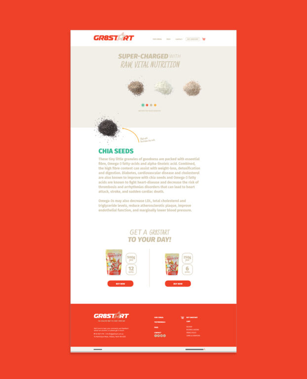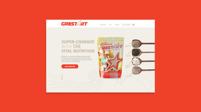 This is a complete naming, branding, design and development project by Slick Design. A family owned and created product, this healthy breakfast alternative needed a name to start its life and Gr8start was born. Its logo and packaging use strong, striking colours with a hint of action through the star to also emphasise its heath rating. Our photography of the product was used in the design of the holding page and website and the content was written to match health and food standards.